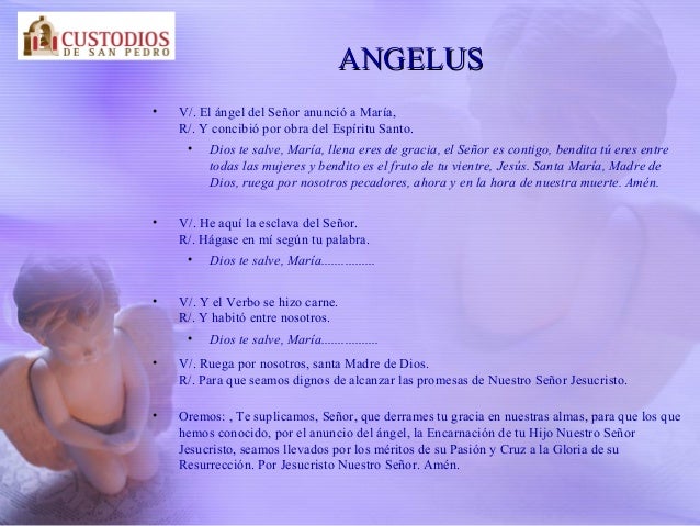 El Angelus Santa maría, madre de dios, ruega por nosotros, pecadores, ahora y en la ahora de nuestra muerte.